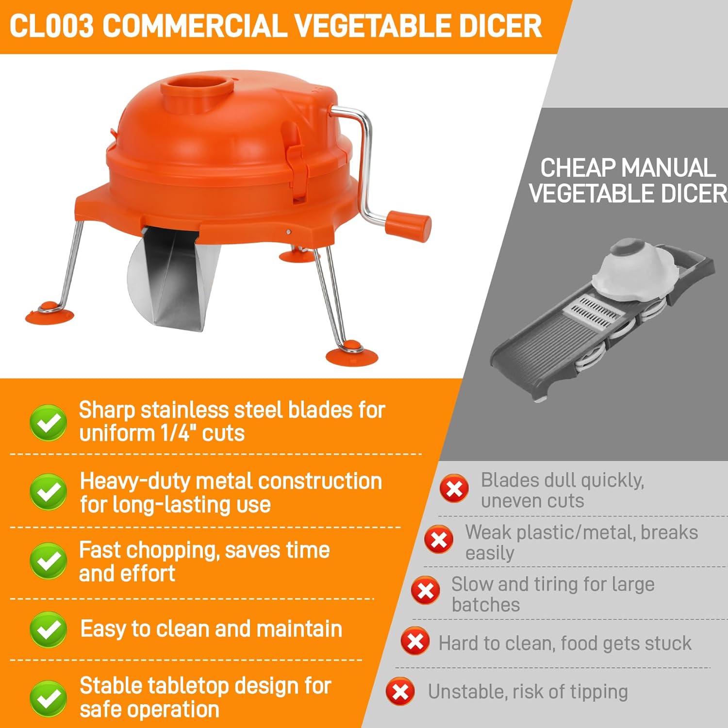 👉 Check the latest price and detailed customer reviews for the Margar CL003 Commercial Vegetable Dicer on Amazon.